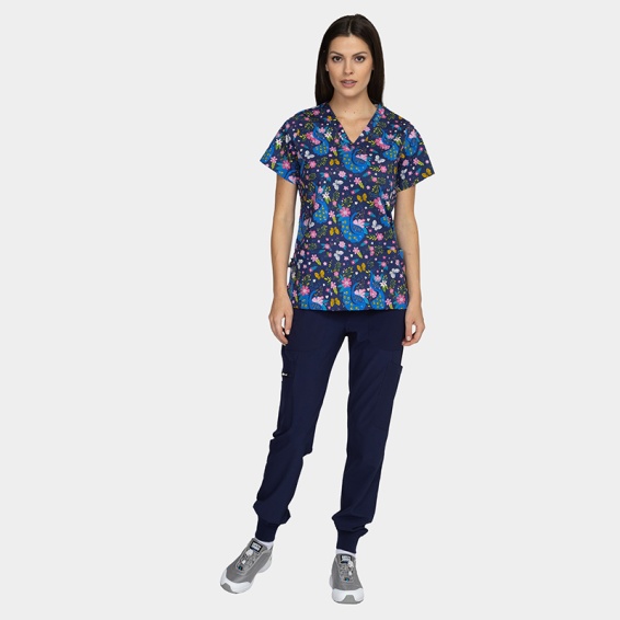 Ideală pentru pediatrie, stomatologie, clinici veterinare sau grădinițe, bluza contribuie la crearea unei atmosfere relaxante și prietenoase.