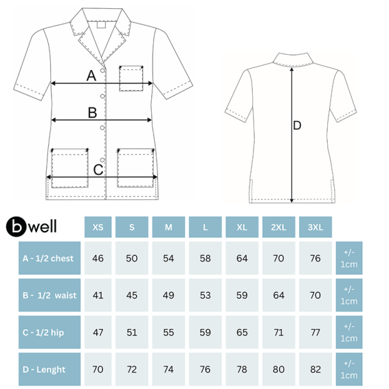 Halatul de damă Gabi este alegerea ideală pentru profesioniștii din domeniul medical, industria alimentară sau servicii de curățenie, care au nevoie de un echipament practic, confortabil și rezistent în utilizarea zilnică.